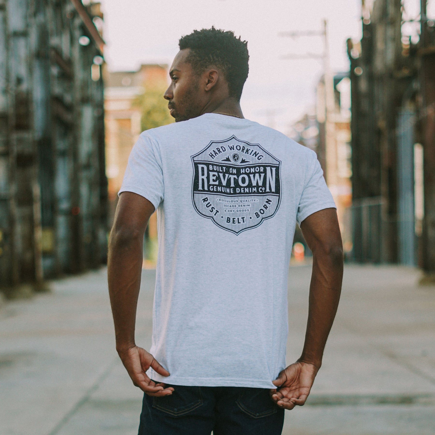 Revtown was born in the heart of the Rust Belt, a place where your character is measured by your grit. Around here, there’s no substitute for hard work. And we like to keep things simple—nothing flashy, just well-worn denim and a classic tee.